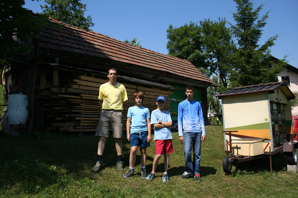 Skupinska slika z "mentorjem" pred čebelnjakom na Storževem griču